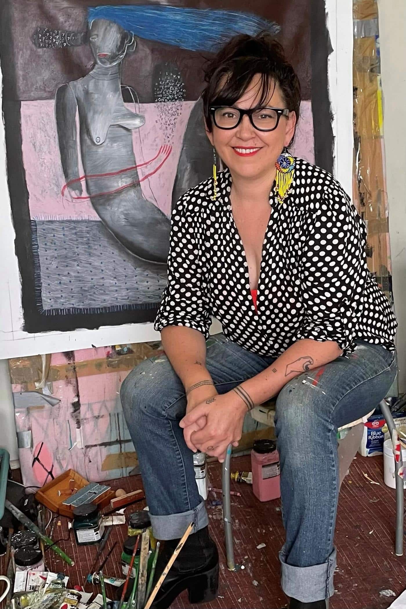 Angie’s artistic practice spans ceramics, glassware, clothing, and film, with painting as her primary focus. Her work is both visually striking and intellectually stimulating. She studied Fine Art and Graphic Design in Newcastle and Sydney and has achieved significant success, with numerous exhibitions nationally and internationally and finalist positions in prestigious art prizes. Alongside her artistic career, Angie works part-time as an Artist Educator, focusing on special projects for the Deaf and hard-of-hearing community. She also freelances at several renowned art institutions.