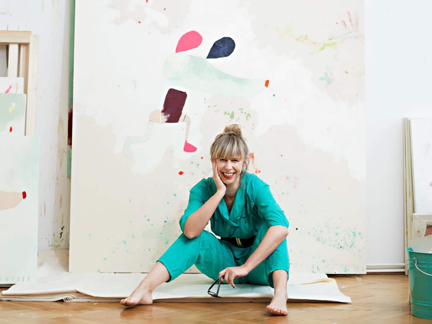 Gschwanter’s current work is a vibrant exploration of abstract forms, displaying a captivating evolution from her earlier focus on “stranger creatures, peculiar beings, and picturesque figures.” Presenting as a mesmerising arrangement of dots or splashes, Gschwanter’s canvases are alive with colour, energy and a harmonious sense of balance communicated with colour and form.