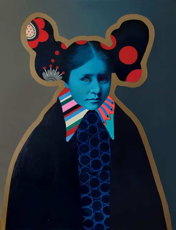 Acrylic, pen and rice paper on canvas.