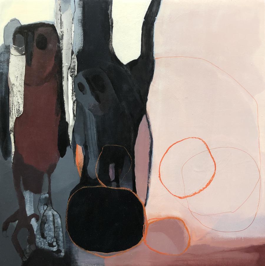 CLAIRE YERBURY – Down, in, out and up 60 x 60cm mixed media