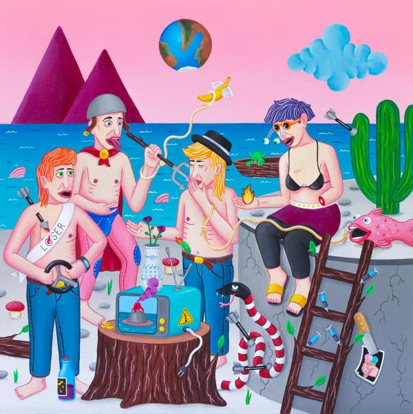 In my paintings I use nonsense as the main tool to talk about the absurdity of human behaviour.