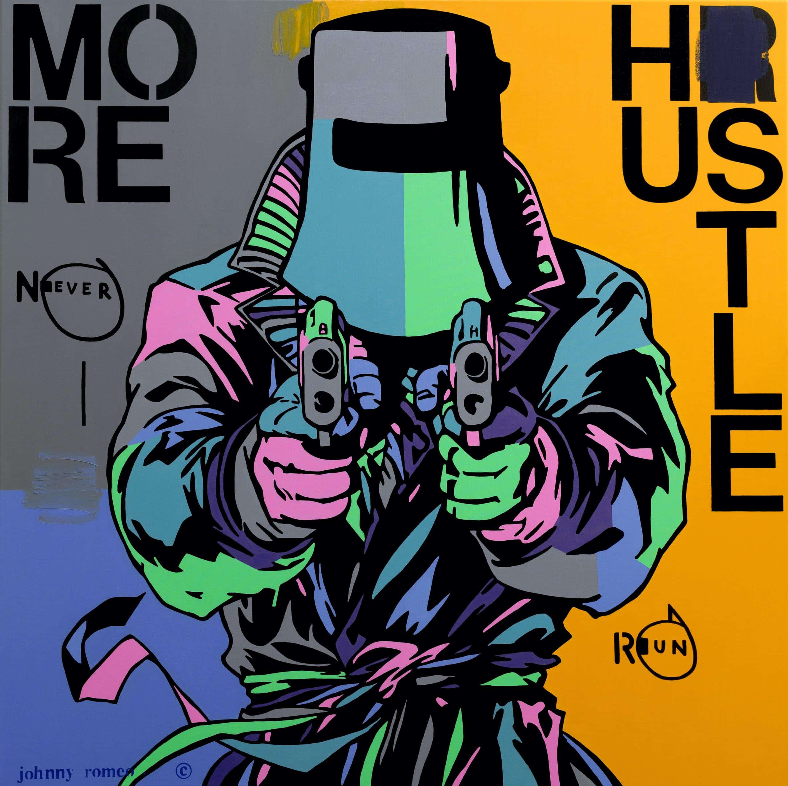 Johnny Romeo, Never Run, 2022, acrylic and oil on canvas 122cm x 122cm (48_ x 48_)