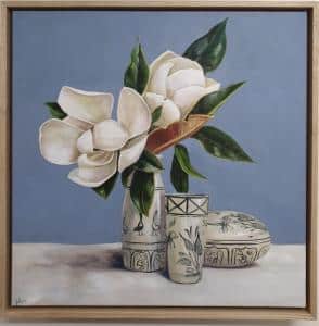 LAURA WHITE-MAGNOLIA WITH VIETNAMESE CERAMICS 51 X51CM