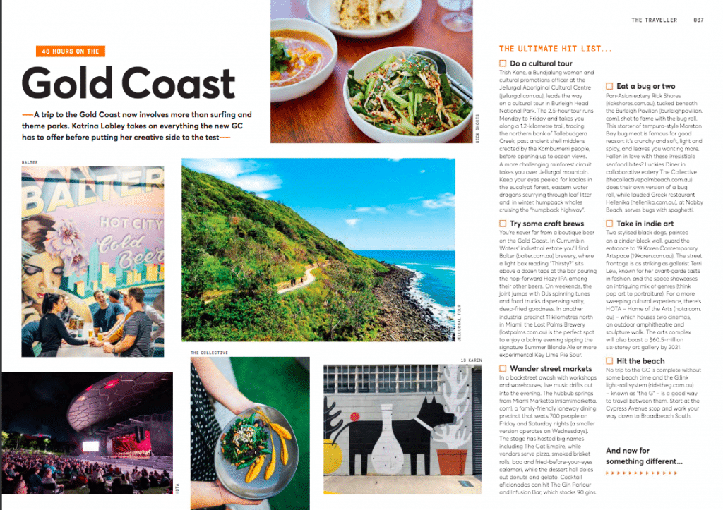 5 ways to experience the new Gold Coast 19 Karen features in a an article on Jetstar.com on where to experience the region’s food, culture and art scene. Read the article HERE